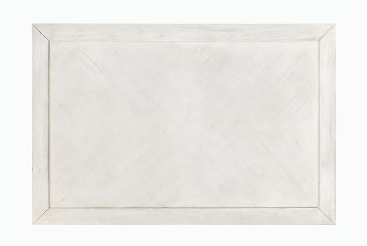 Finished in an off-white with raffia drawer fronts