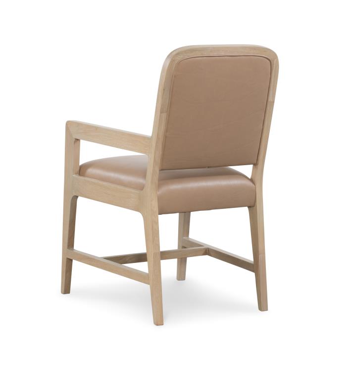 Cerused white oak dining chair with tan trapunto stitched leather seat back.