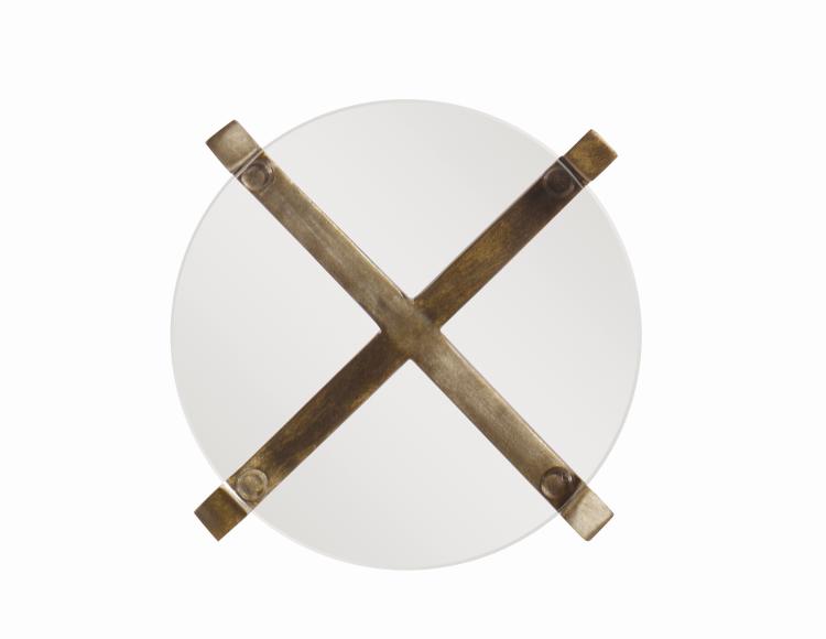 Acrylic top with burnished steel base