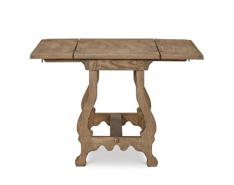 Oak solids and veneer in a highly distressed and aged natural finish with Brass hardware