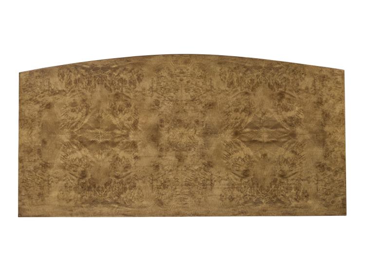 Stunning bowfront chest featuring bleached oak burl and custom hardware. Four drawers.
