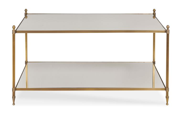 Brass finished metal frame with clear mirror top and shelf