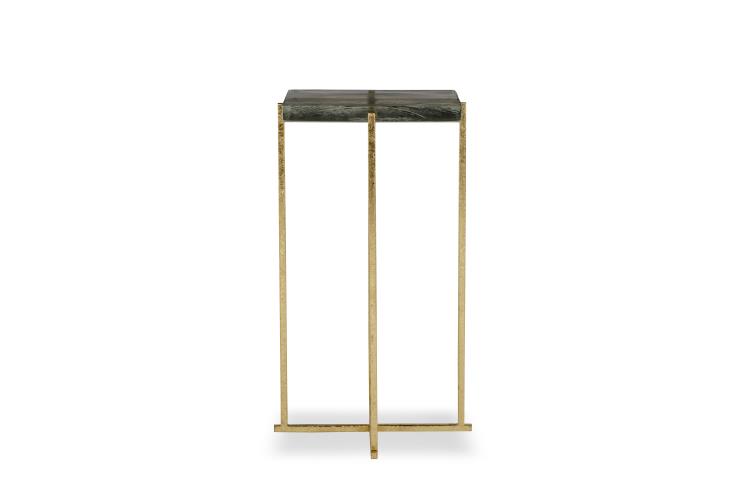 Cast glass top with a gold-leaf metal base