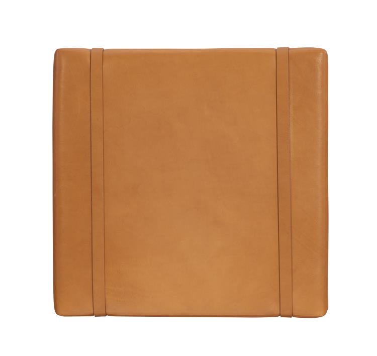 Camel colored leather with white oak frame and bronze details.